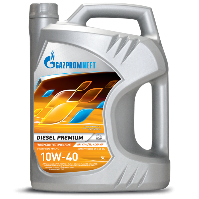 Gazpromneft Diesel Premium 10W-40 — универсальное всесезонное моторное масло категории SHPD, произведённое на основе полусинтетической базы и сбалансированного пакета высокоэффективных присадок. Обеспечивает максимальную защиту мощных и высокофорсированных дизелей с турбонаддувом и без, а также бензиновых двигателей, в том числе с системами рециркуляции (EGR) и селективного каталитического восстановления (SCR). Масло отличается продолжительным межсервисным интервалом и стабильной вязкостью, формирует прочную масляную плёнку для снижения износа при экстремальных нагрузках, а также способствует поддержанию чистоты двигателя и предотвращению образования высоко- и низкотемпературных отложений[web:65][web:69][web:70][web:71][web:72].