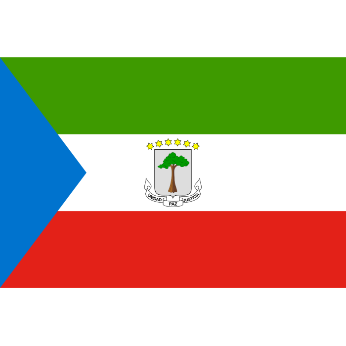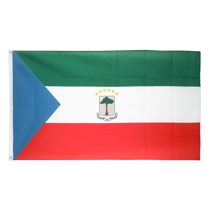 Флаг Экваториальной Гвинеи изготовлен из полиэфирной ткани, обладающей отличными эксплуатационными характеристиками. Он устойчив к внешним факторам, легко окрашивается и сохраняет насыщенные цвета даже при длительном использовании. Легкость материала способствует удобному поднятию флага и предотвращает его ускоренный износ, особенно в ветреных условиях. Флаг Экваториальной Гвинеи представлен в традиционной расцветке: три горизонтальные полосы — зеленая, белая и красная, а слева расположена голубая треугольная вставка с изображением герба страны. Зеленый цвет символизирует природные богатства, белый — мир, красный — борьбу за независимость, а голубой — море и надежду. Флаг предназначен для идентификации судов при заходе в порт Бата (Port of Bata) и порт Малабо (Port of Malabo), соответствуя международным требованиям и обеспечивая их узнаваемость в морских перевозках.-