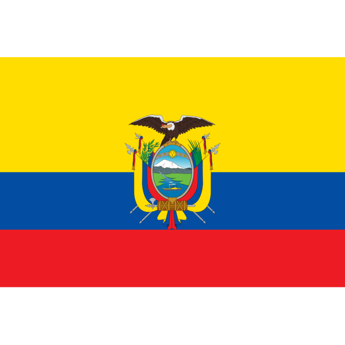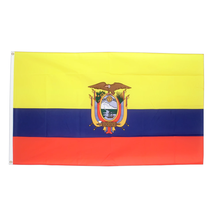 Для изготовления флага используется ткань с плотностью около 210 г/м². Этот материал отличается высокой прочностью и износостойкостью, устойчив к влаге, ультрафиолетовому излучению и воздействию сильного ветра, что особенно важно при использовании флага на судах. Благодаря легкости полиэфирной ткани флаг хорошо развевается и долго сохраняет свою форму и цвет. Яркие краски глубоко проникают в структуру материала, обеспечивая стойкость и насыщенность изображения на протяжении длительного времени. Флаг Эквадора выполнен в традиционных национальных цветах: верхняя жёлтая полоса символизирует богатство страны и солнечный свет, синяя средняя полоса — небо и океан, омывающий берега Эквадора, а нижняя красная — кровь, пролитую за независимость. Центральная часть флага украшена государственным гербом, включающим изображение вулкана Чимборасо и реки Гуаяс, а также корабль, символизирующий торговлю и морское наследие страны. Этот флаг специально предназначен для использования на морских судах, совершающих заходы в международные порты, включая Порт Гуаякиль (Port of Guayaquil) — крупнейший морской порт Эквадора. Яркость, прочность и соответствие государственным стандартам делают его идеальным выбором для демонстрации государственной принадлежности судна.-