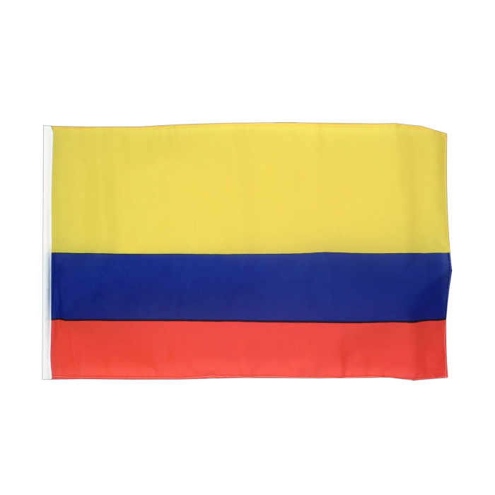 Флаг Колумбии выполнен в точном соответствии с официальными цветовыми стандартами. Верхняя половина полотна окрашена в насыщенный жёлтый цвет, символизирующий богатства и ресурсы страны. Ниже расположены две равные полосы — синяя, символизирующая море и небо, и красная — олицетворение борьбы за свободу. Цвета флага устойчивы к выцветанию и сохраняют насыщенность даже при длительном использовании на открытом воздухе.