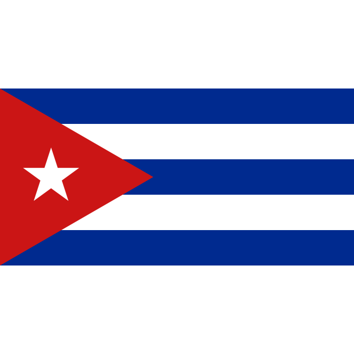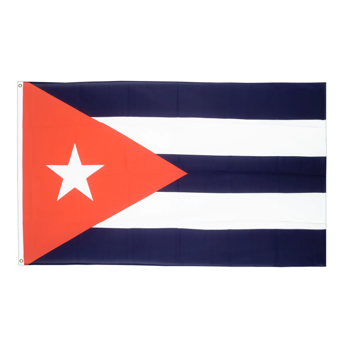 Для изготовления флага используется полиэфирная ткань с плотностью около 210 г/м². Этот материал обеспечивает отличную износостойкость и надежную защиту от атмосферных воздействий — солнца, ветра и дождя. Благодаря своей структуре полиэфир легко окрашивается, позволяя достичь ярких и насыщенных цветов, которые долго сохраняются даже при интенсивной эксплуатации. Лёгкость ткани снижает нагрузку на крепления и препятствует быстрому износу при сильных порывах ветра. Флаг Кубы выполнен в традиционных цветах: пять чередующихся горизонтальных полос синего и белого цвета символизируют независимость и свободу. Красный равносторонний треугольник у древка представляет кровь, пролитую за свободу, а расположенная внутри белая пятиконечная звезда — свет независимости и единства нации. Цвета нанесены с высокой точностью, соблюдая все пропорции и выдерживая требования к стойкости. Флаг предназначен для морского применения и используется при заходе судов в порты Кубы: Порт Гавана (Port of Havana) Порт Сантьяго-де-Куба (Port of Santiago de Cuba) Он соответствует международным требованиям идентификации судов и идеально подходит для использования на морских судах при заходе в территориальные воды Республики Куба.