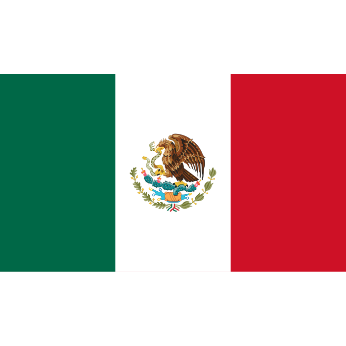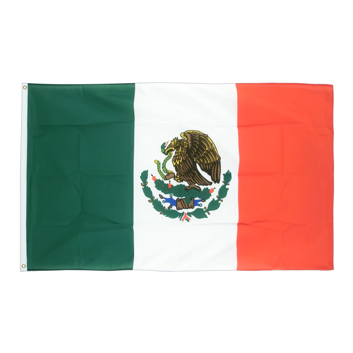 Флаг изготовлен из полиэфирной ткани плотностью около 210 г/м², которая отличается высокой прочностью и стойкостью к неблагоприятным погодным условиям: ветру, дождю и солнечному излучению. Материал легко поддаётся окрашиванию, что обеспечивает насыщенные и устойчивые цвета. Полиэфир остаётся лёгким даже при намокании, что уменьшает износ флага при длительном использовании, особенно в ветреную погоду. Флаг Мексики исполнен в классическом вертикальном триколоре: зелёная полоса у древка символизирует надежду, белая в центре — единство, красная у свободного края — кровь героев. В центральной части, на белом фоне, изображён национальный герб — орёл с змеёй в клюве, сидящий на кактусе. Все цветовые элементы нанесены точно, с яркими оттенками, которые не выгорают на солнце и не теряют насыщенности со временем. Данный флаг предназначен для использования при судозаходах в порты Мексики: Порт Альтамира (Port of Altamira) Порт Мансанильо (Port of Manzanillo) Порт Веракрус (Port of Veracruz) Флаг соответствует требованиям международной морской идентификации и используется при заходе судов в мексиканские порты.