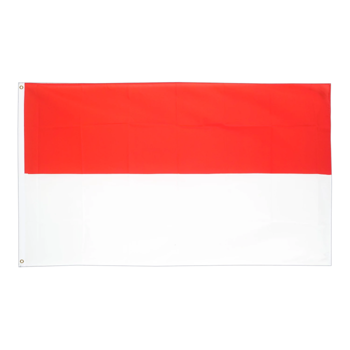 Для изготовления флага применяется полиэфирная ткань плотностью около 210 г/м². Этот материал обладает высокими эксплуатационными качествами: он прочный, устойчив к влаге, ветру и воздействию ультрафиолета. Полиэфир легко окрашивается, что позволяет добиться ярких и устойчивых к выцветанию цветов. Лёгкость ткани обеспечивает удобство в подъёме и уменьшает износ при сильных порывах ветра, что особенно важно для морского применения. Флаг Индонезии выполнен в строгом соответствии с государственными стандартами. Он состоит из двух горизонтальных полос одинакового размера: верхняя полоса — красного цвета, символизирующего мужество, нижняя — белого, обозначающего чистоту. Яркость и контрастность цветов достигнуты благодаря качественной окраске ткани, обеспечивающей долговечность и стойкость даже при длительном использовании. Флаг предназначен для использования при судозаходах в порты Индонезии: Порт Джакарта (Port of Jakarta) Порт Сурабая (Port of Surabaya) Он соответствует требованиям международной морской идентификации и рекомендуется к использованию на судах, осуществляющих заход в территориальные воды Индонезии.
