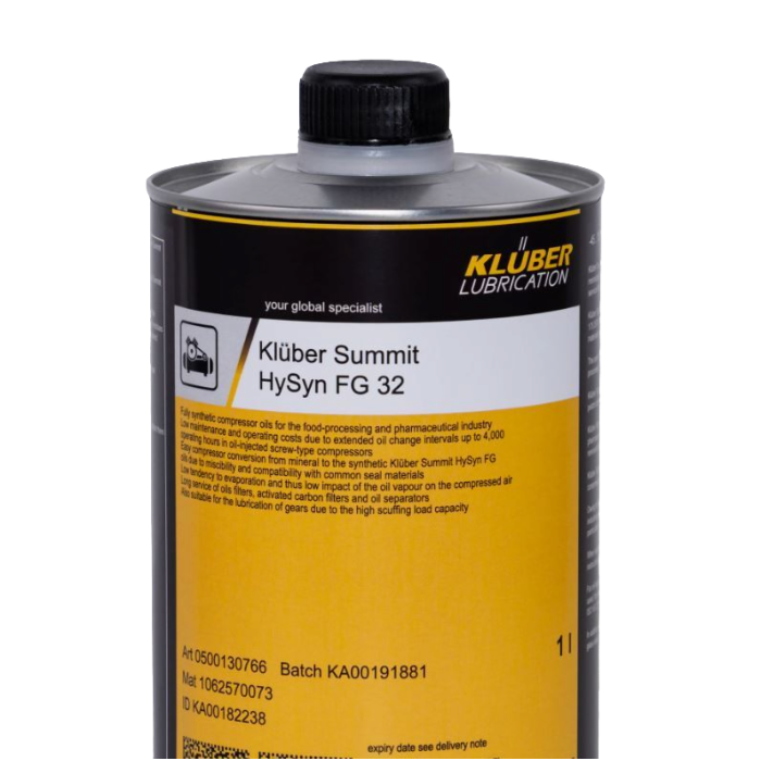 Масла Klüber Summit HySyn FG представляют собой смазочные материалы на базе синтетических углеводородов, разработанные специально для воздушных компрессоров. Они подходят для применения в пищевой и фармацевтической отраслях, где возможен непреднамеренный контакт масла с продуктами или упаковкой. Благодаря их универсальной совместимости с различными уплотнительными материалами, переход с минеральных масел происходит без сложностей. Эти масла обладают высокой устойчивостью к испарению, что снижает уровень масляных паров в сжатом воздухе, а также способствует экономичности эксплуатации за счёт увеличенных межсервисных интервалов.Подробнее