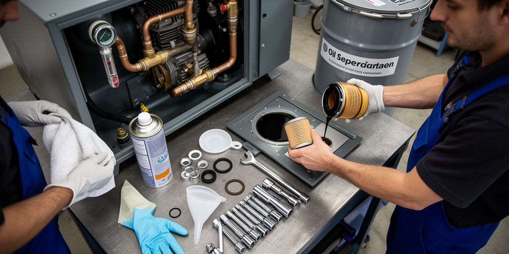 Замена фильтров и сепаратора: установите новые картриджи и фильтрующие элементы, убедитесь в правильной посадке уплотнений.