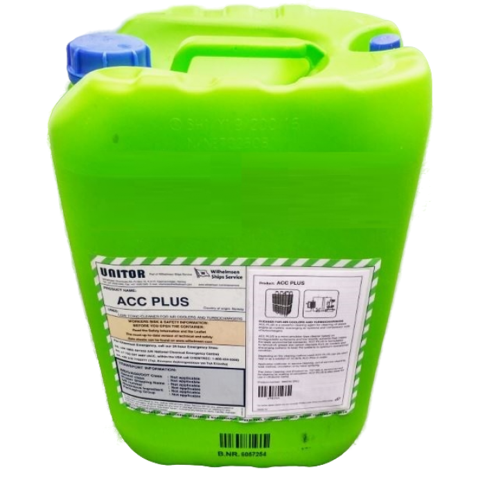 АСС PLUS — это очиститель, разработанный для безопасного использования, который эффективно удаляет загрязнения, не вредя окружающей среде или персоналу. Средство не содержит хлоросодержащих растворителей и фенолотоксилатов, что делает его безопасным для экологии. Его pH (при 1% растворе) варьируется от 7,0 до 8,5, и он активно применяется при температуре от 10°C до 30°C. Продукт упакован в пластиковую бочку объемом 25 литров и является идеальным для использования в различных судовых системах, включая воздухонагреватели и турбонагнетатели.