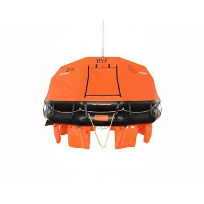 Плот оснащен системой автоматического надува, что обеспечивает его быстрое развертывание в экстренных ситуациях. Также предусмотрены специальные крепления для удобства транспортировки и хранения.