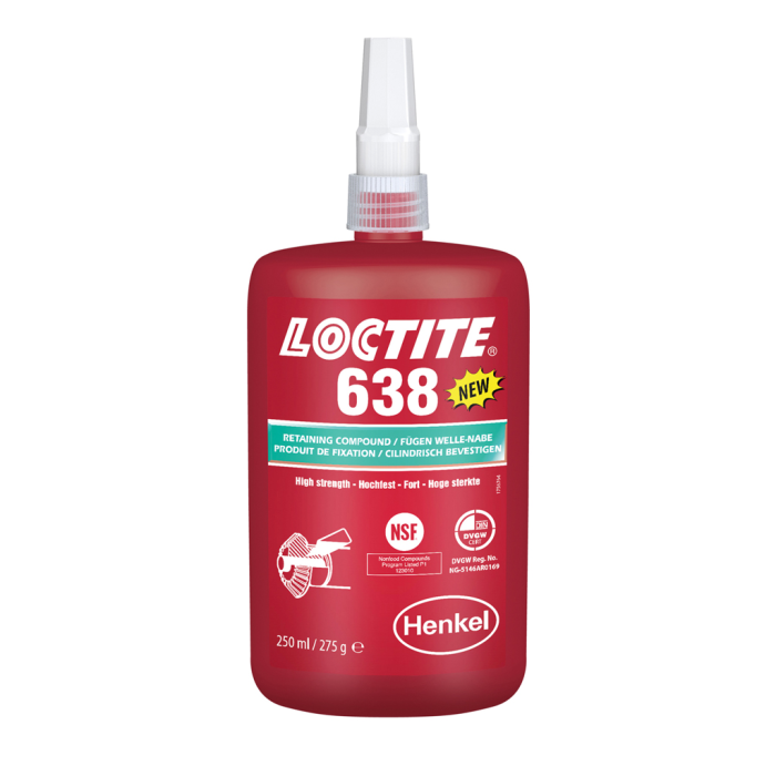 Loctite 638 обладает высокой эффективностью благодаря анаэробной технологии полимеризации, требующей отсутствия кислорода и наличия активной металлической поверхности или использования активатора. Продукт не рекомендуется применять на термопластиках и в средах с чистым кислородом или сильными окислителями. Для демонтажа соединений предусматривается нагрев до 250°C. Для очистки остатков рекомендуется использовать специализированные средства Loctite без риска повреждения металла.